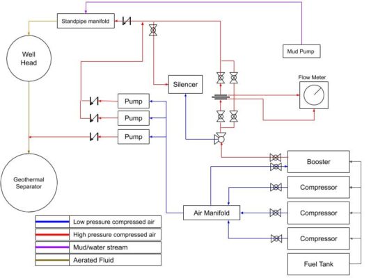 Known for years, aerated drilling is a technique where certain amount of compressed air or gas is being used in drilling fluid stream to adjust the equivalent circulating density (ECD). This technique is widely used in Geothermal wells that require “unconventional” approaches to reach the target depth.